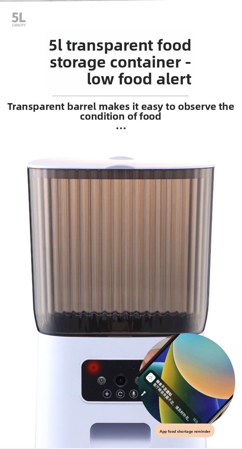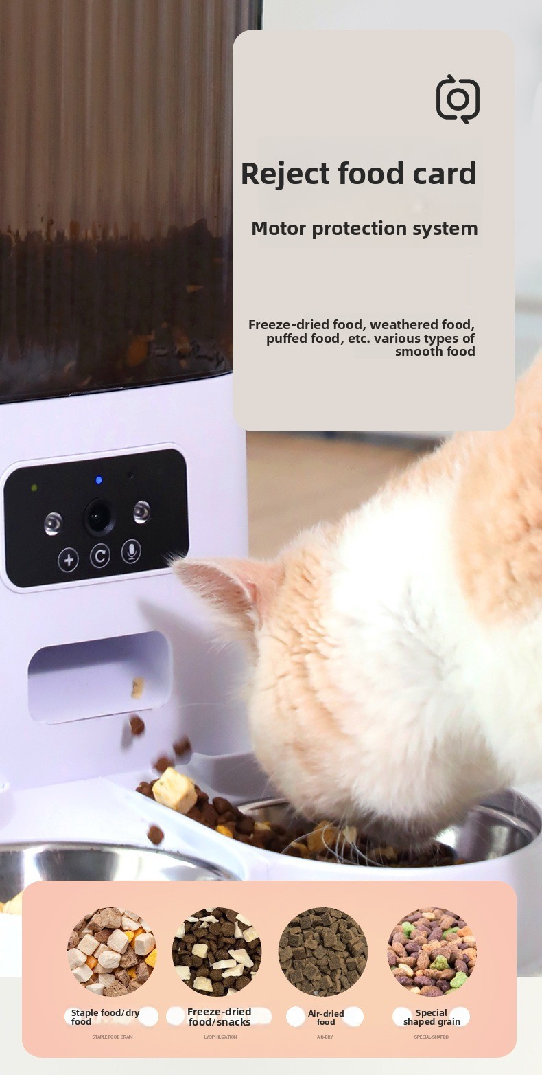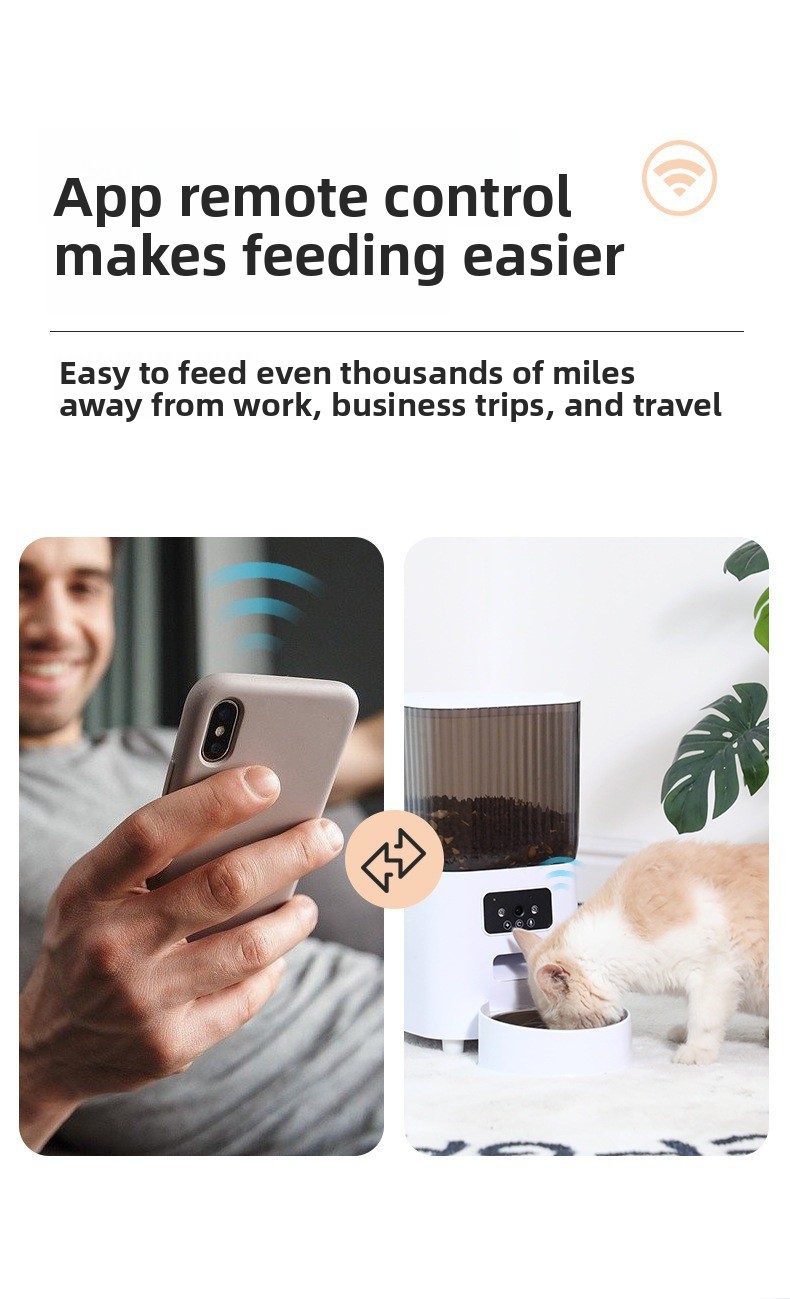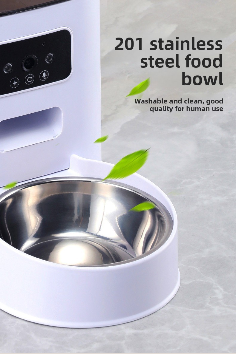 - Surveillance en direct (modĂšle vidĂ©o) : CamĂ©ra grand angle intĂ©grĂ©e pour garder un Ćil sur votre animal pendant ses repas.